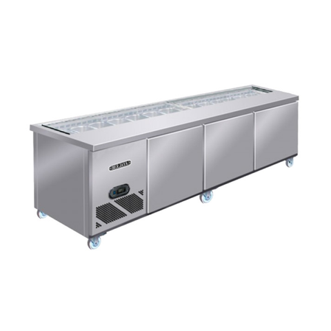 Bàn mát salad sandwich Berjaya BS3D/SSCF8/Z một thiết bị giữ lạnh chuyên dụng cho các nhà hàng phục vụ đồ ăn nhanh. Sản phẩm được thiết kế các khay thao tác đựng nguyên liệu trên mặt bàn làm salad, sandwich. Sản phẩm được chúng tôi nhập khẩu nguyên chiếc từ Malaysia. Sở hữu thiết kế cao cấp tinh tế, dễ dàng thao tác sử dụng. Bàn mát salad đang được rất nhiều khách hàng tin dùng và sử dụng tại các hệ thống kinh doanh.