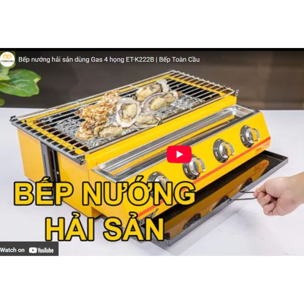 Bếp nướng đa năng không khói 4 họng ET-K222B được sản xuất tại Quảng Đông, Quảng Châu Trung Quốc. Sản phẩm được nhà máy sản xuất với quy cách 4 họng đôt dễ dàng điều chỉnh mức nhiệt độ.