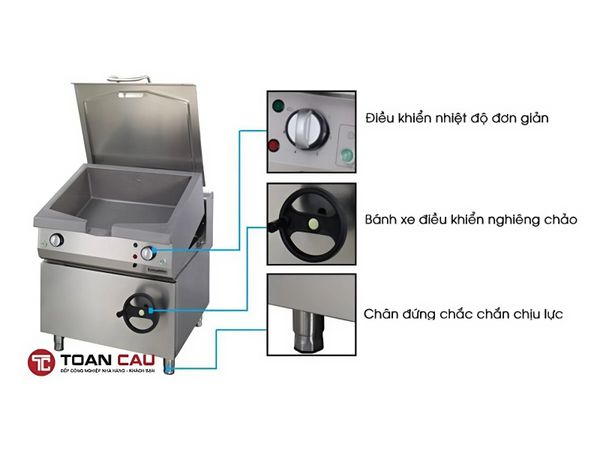 Mô tả đặc điểm của chảo nghiêng tay quay dùng điện OTE 80: