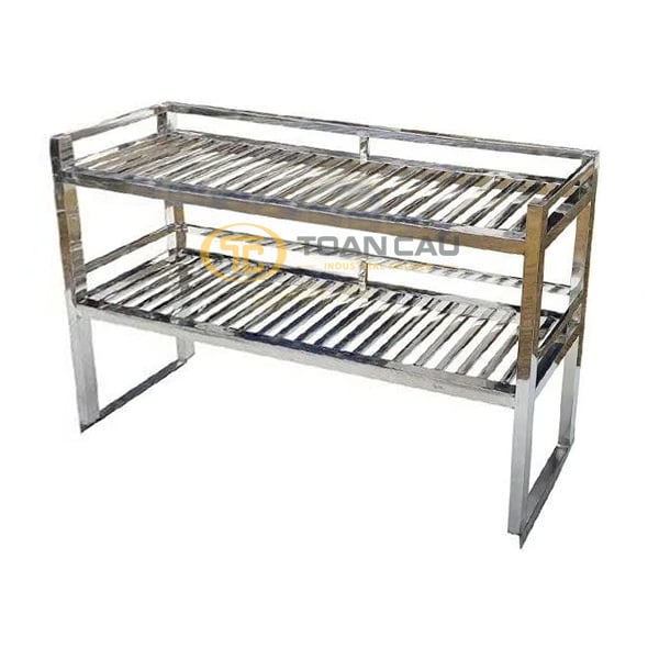 Giá nan 2 tầng inox là một vật dụng nhà bếp phổ biến, được thiết kế để giúp lưu trữ và sắp xếp các vật dụng như chén đĩa, bát, nồi, hoặc đồ gia vị một cách gọn gàng và ngăn nắp. Dưới đây là một số công dụng chính của giá nan 2 tầng inox: