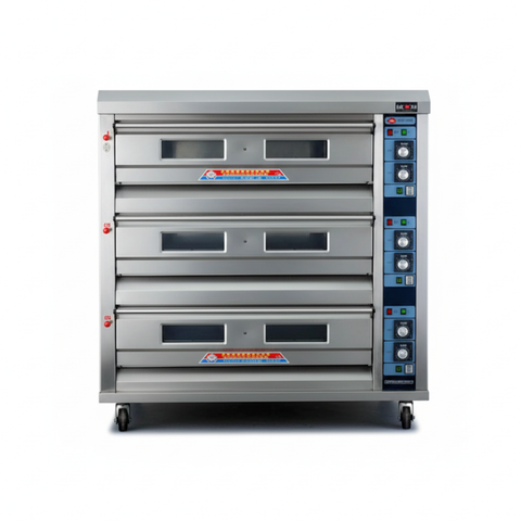 Lò nướng bánh 3 tầng 6 khay dùng điện Hongling XYF-3HP được sử dụng rộng rãi hiện nay không bởi vẻ ngoài hiện đại, sang trọng mà ở khả năng nướng đa năng, nướng được hầu hết các loại bánh ngọt phổ biến hiện nay như: bánh mì ngọt, bông lan, bánh Gato, bánh cupcake, Pizza, bánh trung thu.Với giá thành hợp lý chất lượng tốt nên được sử dụng rộng rãi tại các cơ sở sản xuất bánh ngọt,bánh trung thu lớn.