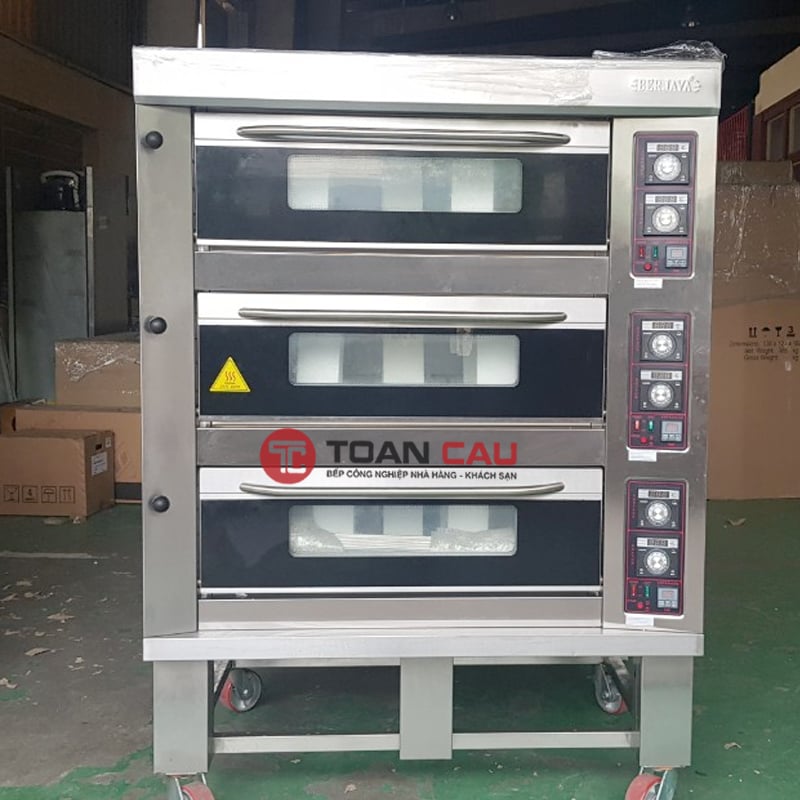 Lò nướng điện 3 tầng 6 khay Berjaya BJY-3B6P-E một sản phẩm lò nướng cao cấp của Malaysia. Với thiết kế công nghiệp, hiện đại, tiết kiệm điện năng. Lò nướng điện Berjaya đang được sử dụng phổ biến tại các cơ sở chuyên nướng bánh, nướng thực phẩm..