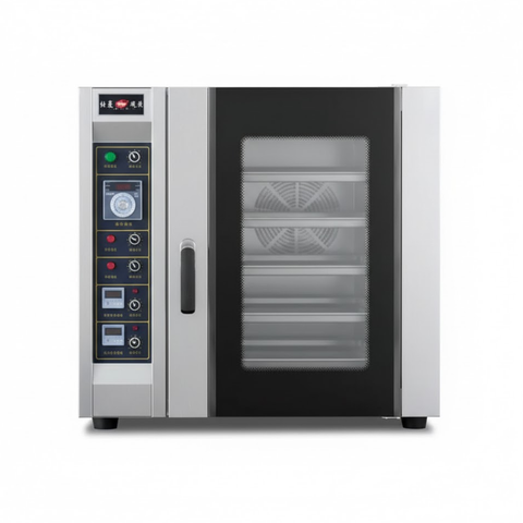 - Hệ thống quạt gió đối lưu tự động giúp thực phẩm chín vàng đều.