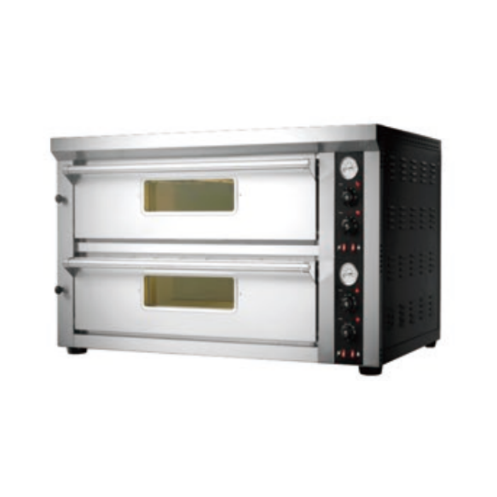 Lò nướng pizza dùng gas có thời gian nướng ít hơn đơn giảm mà vẫn mang lại hương vị thuần khiết. Tiết kiệm thời gian, sức lực cho bạn. Cùng với 2 tầng nướng và 2 bảng điều khiển riêng biệt, bạn có thể dễ dàng chế biến ra những chiếc bánh có độ chín khác nhau, có thể đáp ứng mọi nhu cầu của khách hàng.