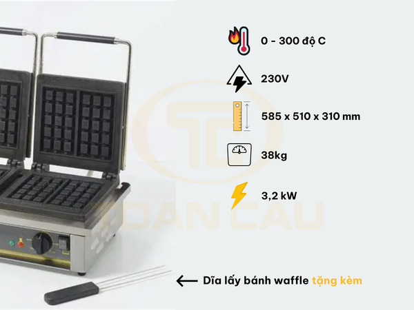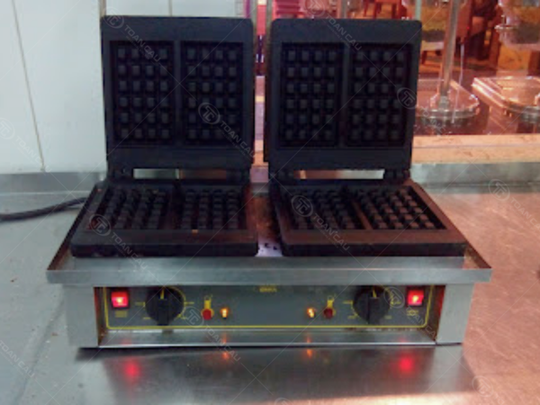 Máy được trang bị 2 khuôn gang đúc nguyên khối, mỗi khuôn gồm 2 ô bánh, cho phép nướng 4 bánh cùng lúc, giúp tăng tốc độ phục vụ và tối ưu thời gian vận hành.