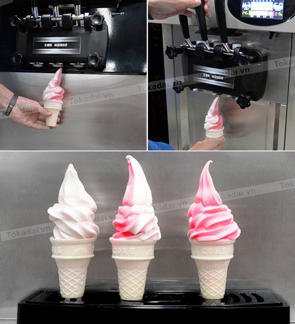 Máy làm kem giá rẻ Tokadai được thiết kế gồm 3 vòi triết kem tinh tế. Một phần giúp cho máy được chắc chắn trong quá trình sử dụng. Ngoài ra các vòi triết kem được làm bằng inox mang an toàn tuyệt đối, tránh han gỉ trong suốt quá trình sử dụng. Bên cạnh đó bạn có thể tạo nên những hương vị riêng của mình bằng những vị như sữa, trái cây….làm nên những món kem ngọt ngào và quyến rũ hơn.
