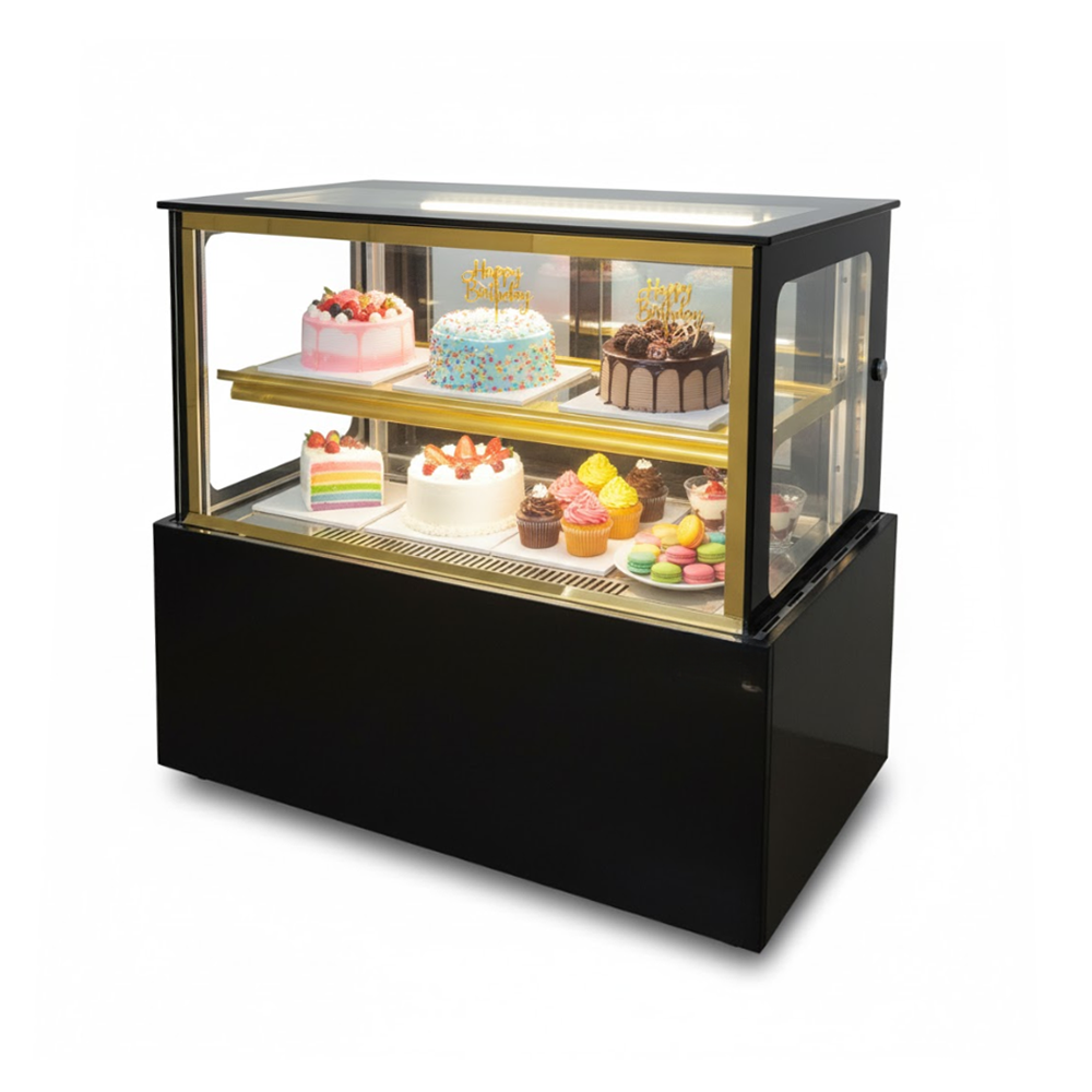 Tủ trưng bày bánh kem để bàn kính vuông là dòng thiết bị làm lạnh tiện ích cho các nhà hàng, khách sạn, các tiệm bành ngọt hay quán café với công dụng không chỉ là thiết bị trưng bày bánh mà còn là thiết bị giữ mát bảo quản bánh kem luôn giữ được độ mềm và tươi ngon.