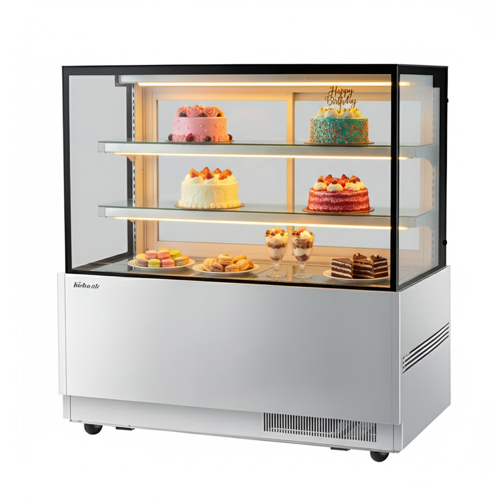 Tủ trưng bày 3 tầng kính vuông Turbo Air TBP1200-2 đến từ thương hiệu hàng đầu của Hàn Quốc. Với thiết kế cao cấp, hiện đại cùng với kích thước 1200cm nhỏ gọn phù hợp với mọi không gian quán, tiệm bánh hoặc khách sạn, trung tâm thương mại. Tủ dùng để trưng bày bánh kem, hoa quả, hoặc nước ngọt,…